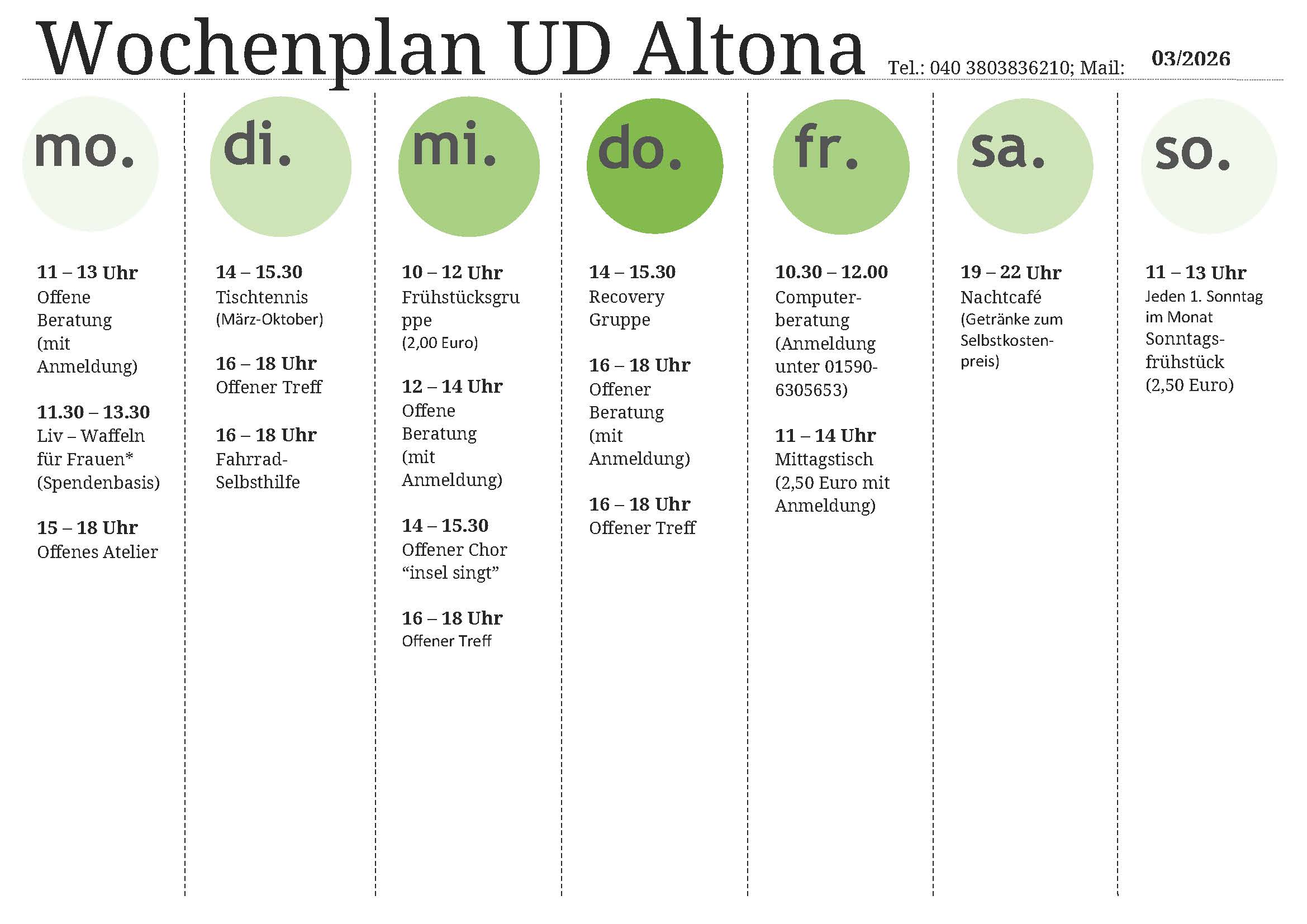 Die UD Altona befinden sich in zentraler Lage mit einer sehr guten Anbindung an den ÖPNV. Die Räumlichkeiten sind barrierefrei und freundlich und hell gestaltet. Es gibt einen sehr großen Gruppenraum, der sich auch als guter Veranstaltungsort eignet.